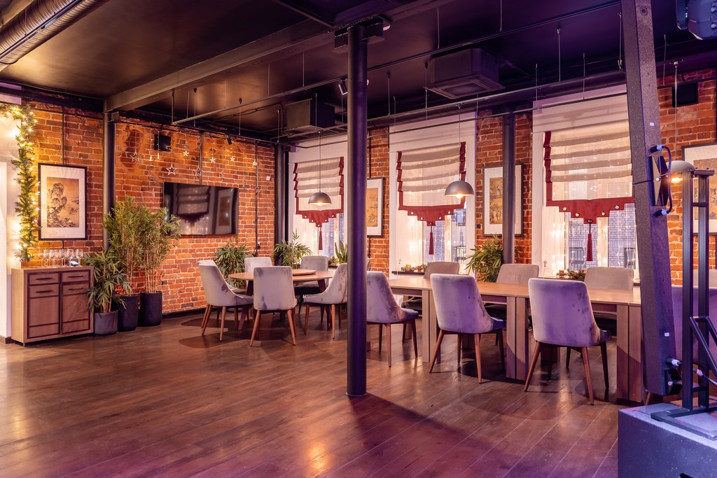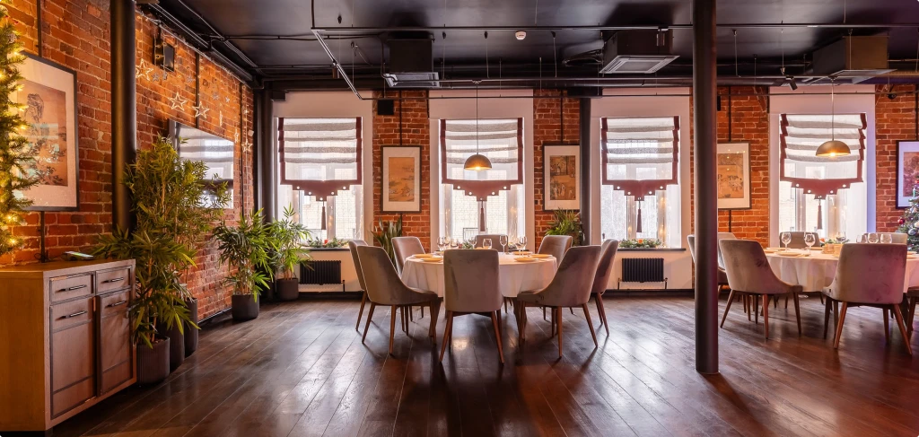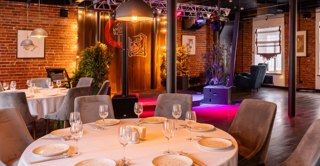 Элегантный интерьер в стиле шинуазри и минимализма создаёт атмосферу уюта и гармонии. Натуральные материалы отделки, дизайнерская мебель и дровяной камин обеспечат комфортную обстановку для ваших мероприятий.